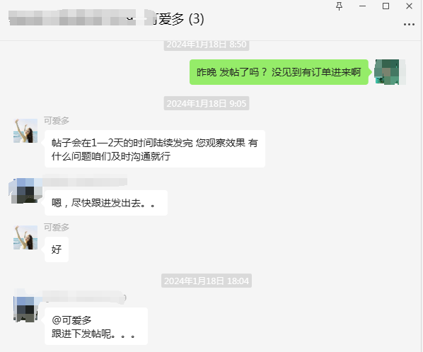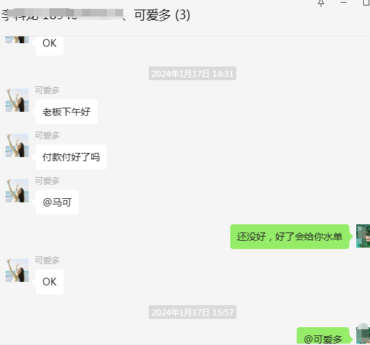 此人 标定是做站外的,所提供的资源 与我们需求相符,但支付款项之后 就消失了,没有任何回应。