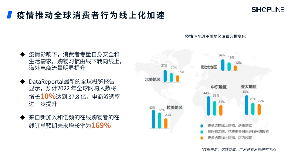 DataReportal最新的全球概览报告显示,预计2022年全球网购人数将增长10%达到37.8亿,电商渗透率进—步提升。