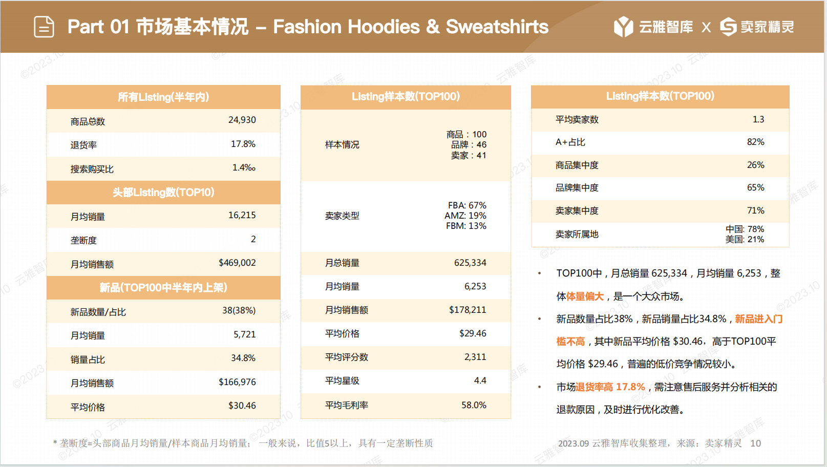 因此,本报告选取其一,亚马逊美国市场上的女士卫衣进行简要分析。从市场趋势、产品分析和消费者洞察、产品建议等方面,希望为亚马逊跨境行业相关者提供有价值的信息。