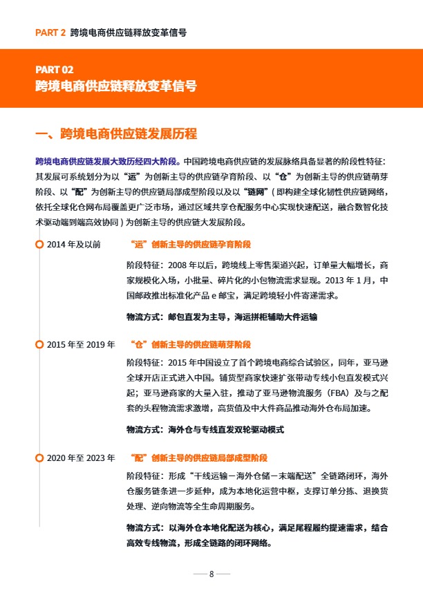 本报告聚焦于跨境电商出口供应链物流全流程管理,涵盖商品从出运地启运跨境运输、海外仓存储、尾程配送直至送达消费者的端到端过程,贯穿头程运输、仓储管理、订单履约、售后处理等核心环节,形成对闭环管理体系的全面认识。