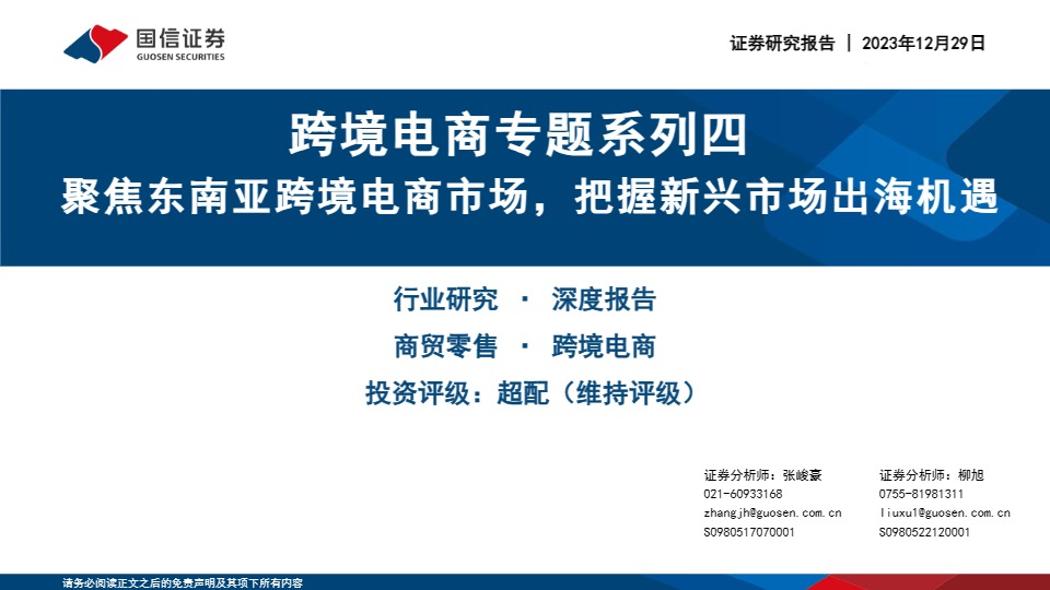《跨境电商专题系列四:聚焦东南亚跨境电商市场,把握新兴市场出海机遇》PDF下载