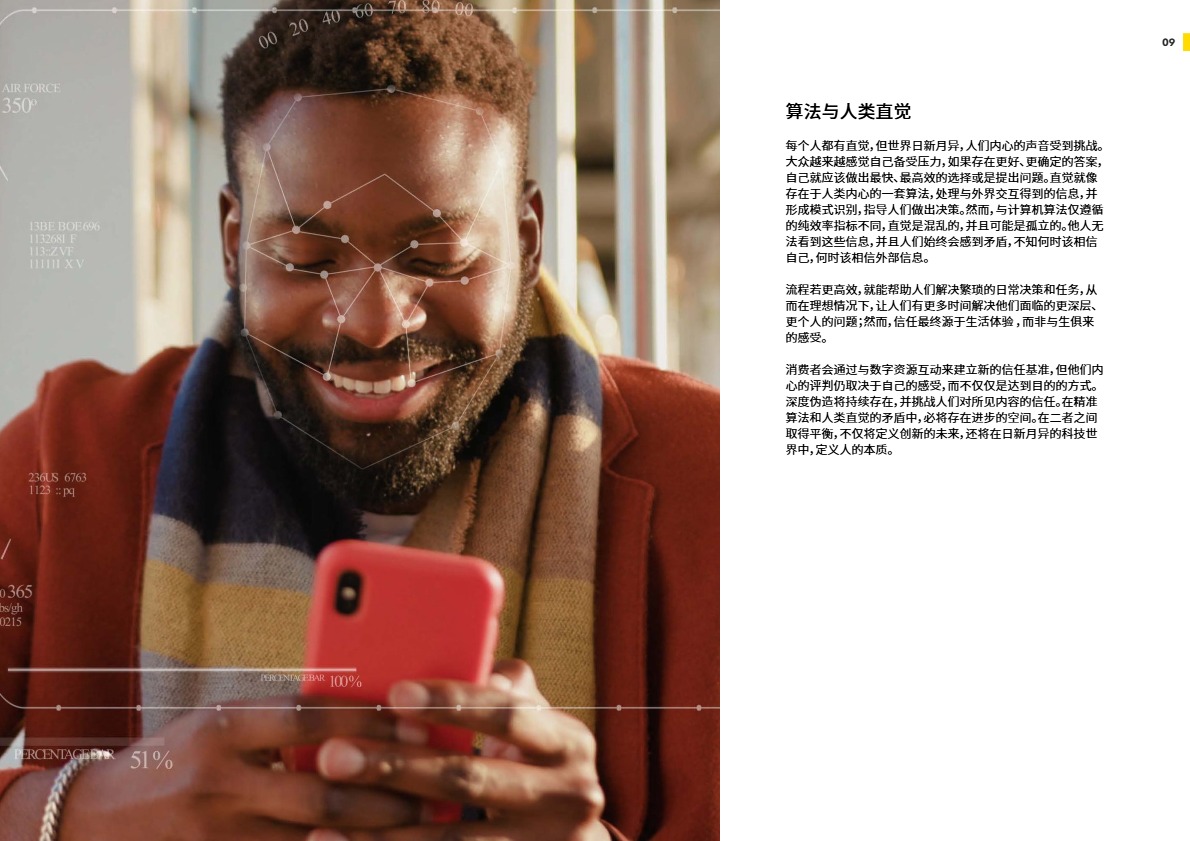 到2030年,算法优化的负面影响将导致便利性与赋能之间失衡。消费者更重视对自己算法身份和数据的控制,因此,科技应用过程如果不透明,将失去消费者的青睐。品牌将感受到这种拉扯,消费者期望的转变将在商业世界掀起浪潮。