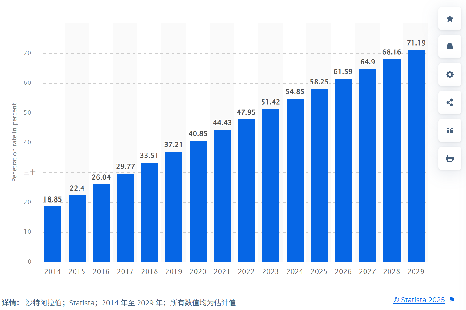 此外,Statista预测,2024至2029年间,该国网上银行普及率预计将增长16.3个百分点,至2029年达到71.19%;