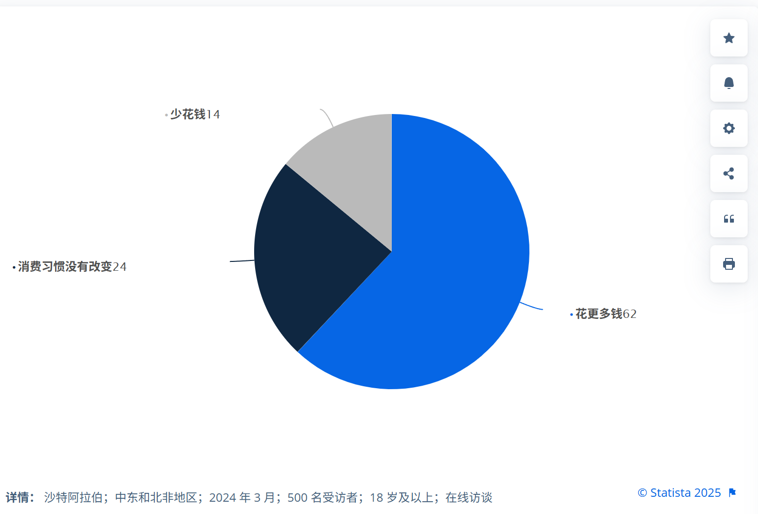 Statista 2024 年的一项调研也佐证了这一趋势:62% 的沙特受访者表示在斋月期间支出超出原计划,仅 38% 表示消费未变或低于预期。这表明,在节庆情境下,沙特消费者更容易出现“情绪性超支”行为,尝鲜、犒赏、送礼等动因显著放大。