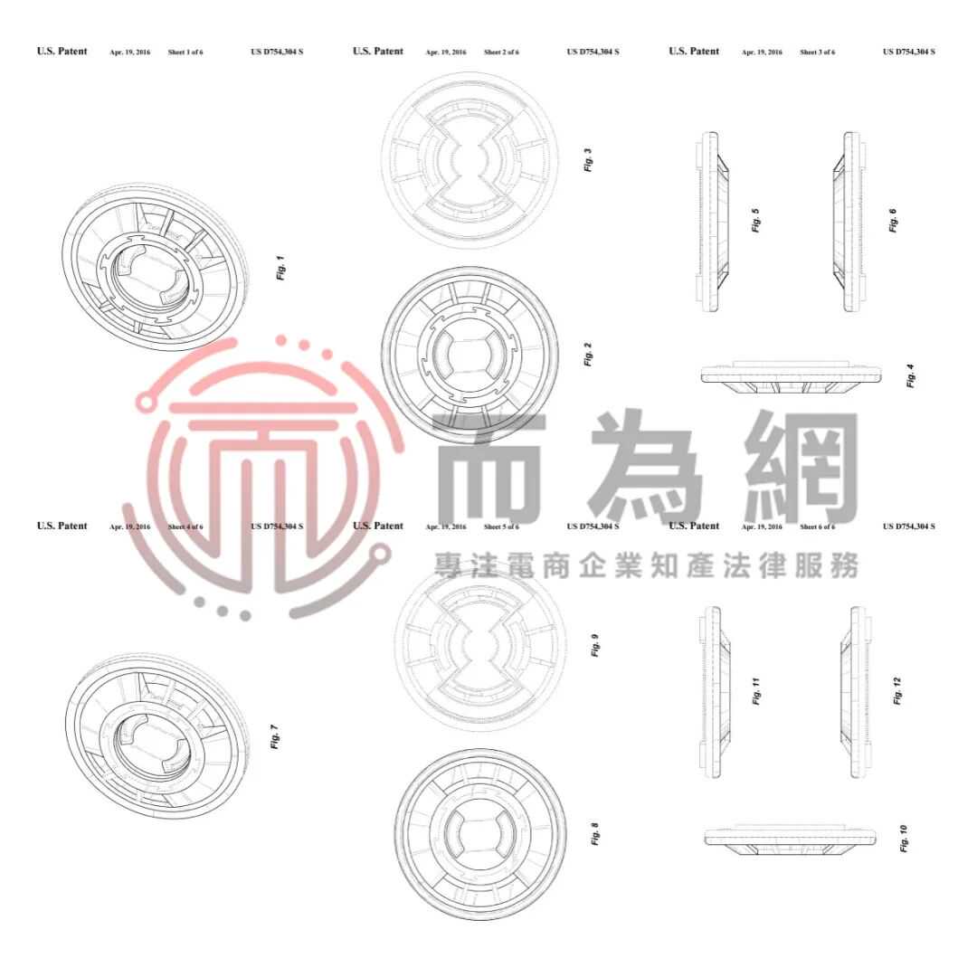 本案涉及一项外观专利,申请日期为2015年1月26日,下证时间为2016年4月19日。未经授权同款CAT 发动机滤芯帽不能售卖,否则会有侵权风险!