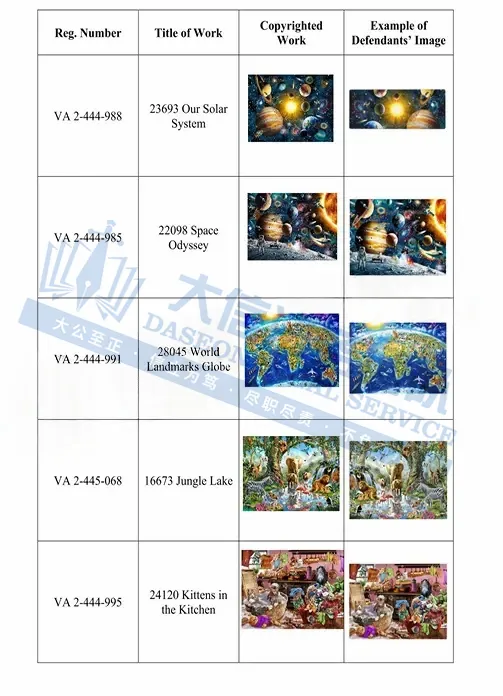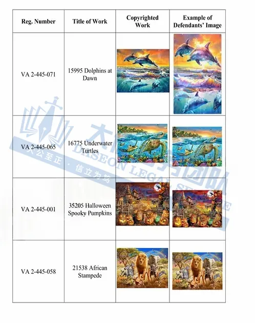 此案为版权维权,涉及19张版权作品,均于2025年1月7日下证,以下是涉及版权的具体信息,未经授权不可擅自使用,侵权风险极高,跨境卖家尽快检索下架,避免造成更大的侵权损失!