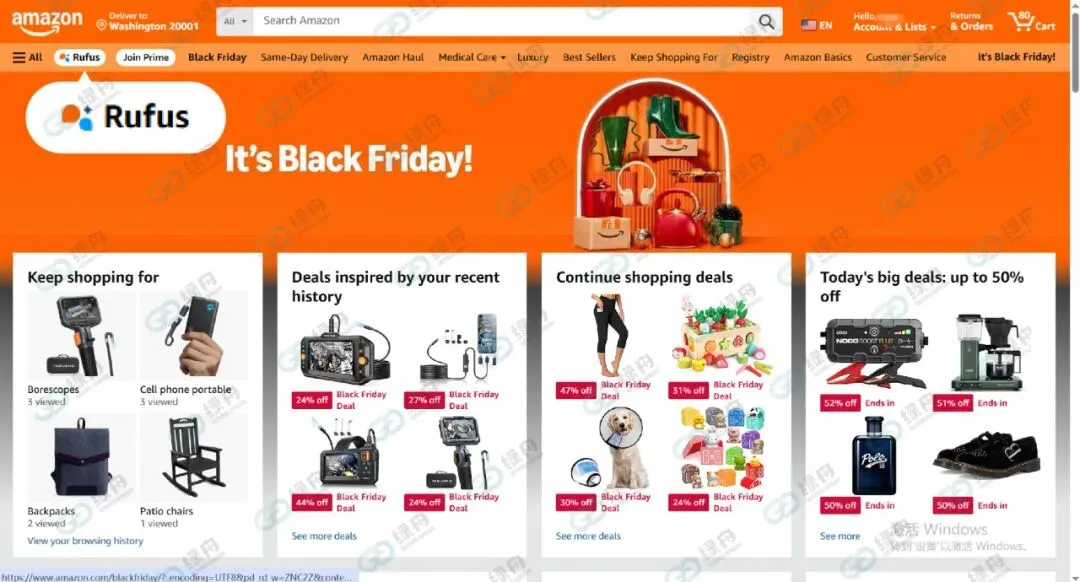 据外媒报道,在今年黑色星期五期间,亚马逊美国站消费者使用AI购物助手Rufus的会话量较过去30天激增100%。