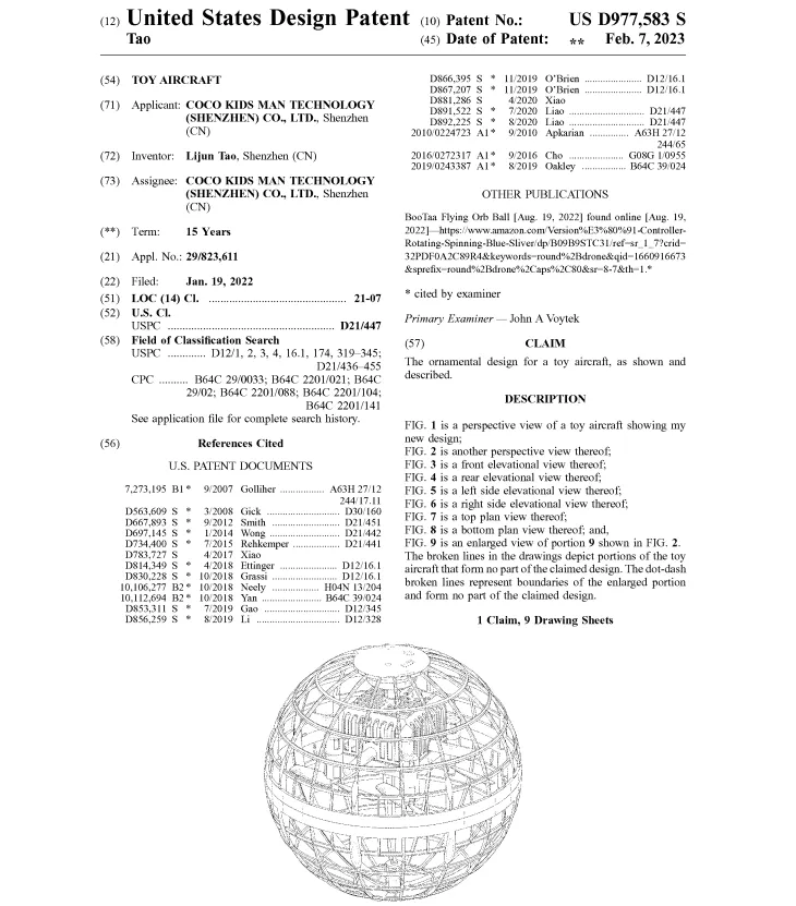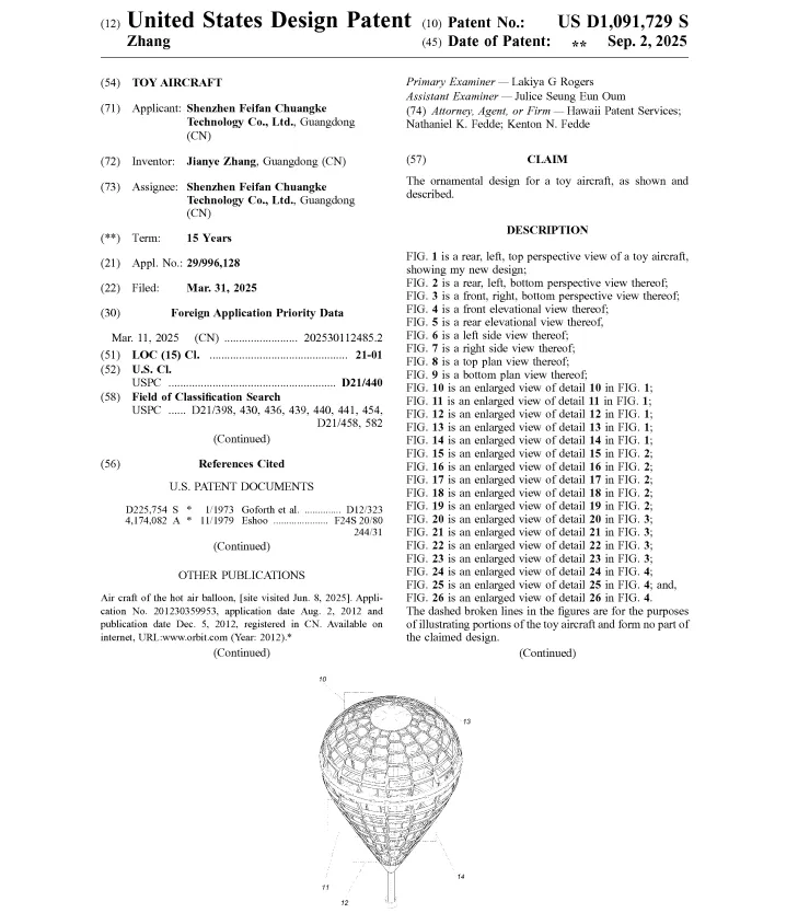 指尖飞行玩具已热销多年,许多卖家都已布局专利,建议大家在针对一件专利做规避设计时,也要注意不要侵犯其他专利。