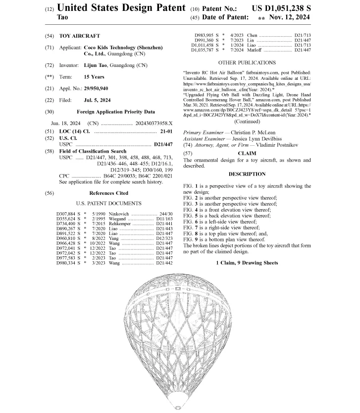 然而有多好卖就有多危险,经积特查询发现,很多指尖飞行玩具都已注册专利,若是闭眼冲极有可能会踩中侵权雷区,建议大家务必做好排查。