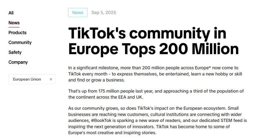 与此同时,TikTok Shop在欧洲已拥有超过2亿月活跃用户,约占欧洲大陆人口的三分之一。在欧盟四国(德国、法国、意大利、西班牙),平台上的达人数量超过400万。