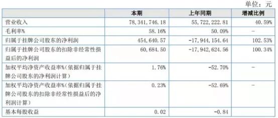 8月21日消息,近日无锡择尚科技股份有限公司(下称“择尚科技”)发布2019半年财报。财报显示,择尚科技在本财年上半年营收超7834.1万元,比上年同期5572.2万元增长40.59%;毛利率为58.16%;归属于挂牌公司股东净利润位45.46万元。