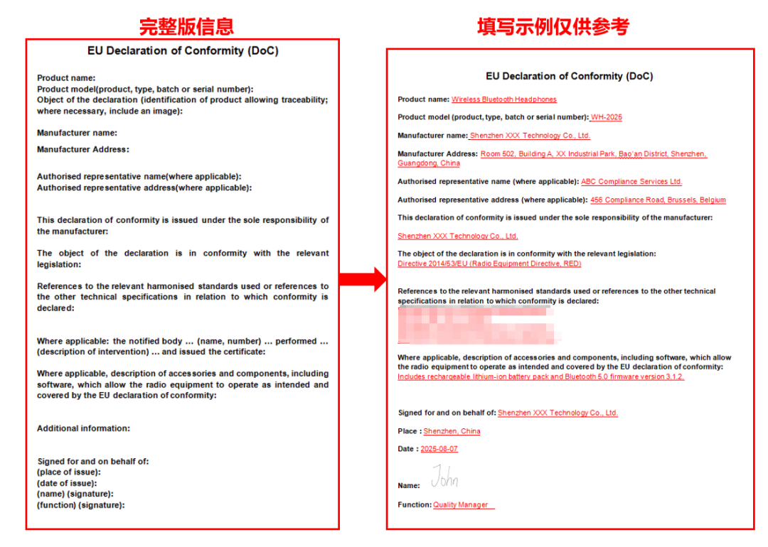 无线电设备Radio Equipment (RED) 符合性声明文件合规要求参考Directive 2014/53/EU