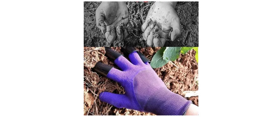 传统园艺手套需频繁更换且效率低,手套也缺乏挖掘辅助功能。为此设计了一款集成爪构件的挖掘手套,能高效应对各类土壤,并兼具防护与舒适性。