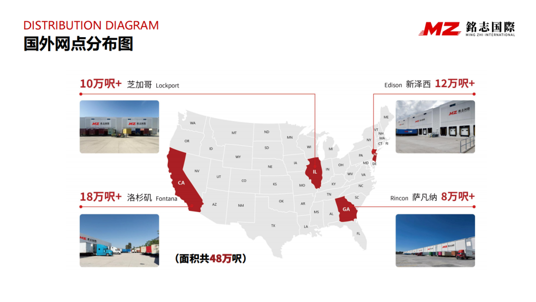 在国际化布局方面,铭志同样不遗余力,已在洛杉矶、芝加哥、新泽西、萨凡纳拥有近48万平方英尺的自营海外仓,为跨境卖家提供强有力的海外支持。