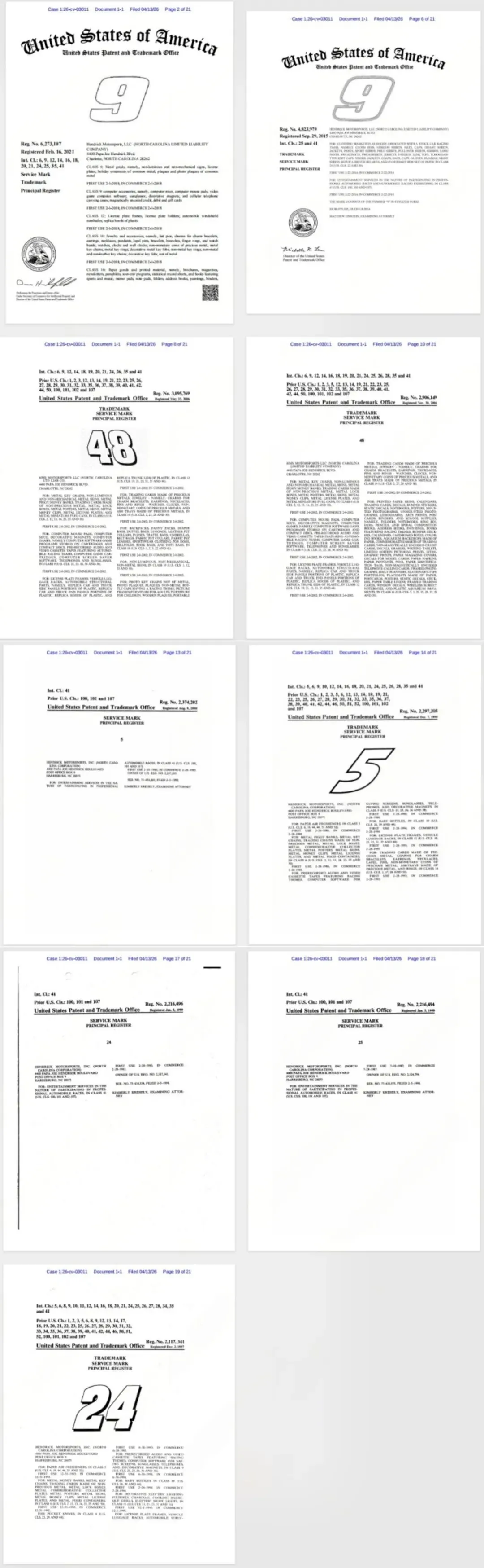 原告HMS HOLDINGS LLC为NASCAR传奇车队Hendrick Motorsports的运营主体,1984年由Rick Hendrick创立于美国北卡州 。作为NASCAR杯赛史上最成功车队,累计斩获15次车手/车队总冠军、超320场胜利,主营品牌推广、营销与商标授权,赛事IP价值极高。