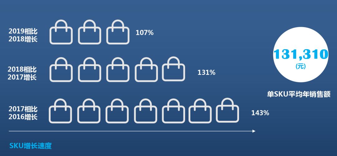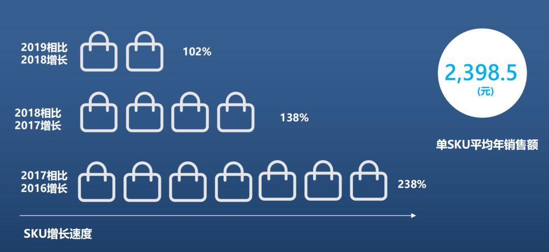 从SKU上看,泛铺卖家需要不断拓展SKU数量来获取订单,但是随着低价包邮受限、平台的品类审核收紧,当你的SKU达到5万,想要找到更多SKU,尤其是能出单的SKU越来越难,2019年泛铺卖家SKU数量增长明显放缓。