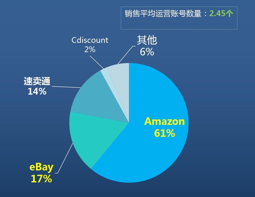 从账号上看,精品卖家平均每个销售运营的账号2.45个,主要是做亚马逊,亚马逊是一个高要求的平台,操作不当也有风险,而且如果想要继续扩展账号,势必需要更多的好产品和备货资金,这些都是考验。