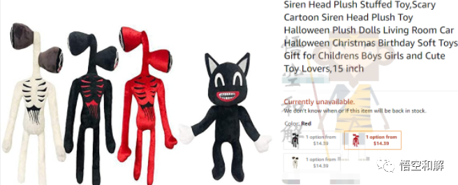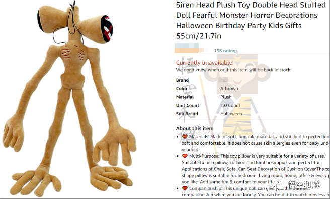 尽管卖家刊登标题里面使用的是siren head,单词中间隔开了,但刊登的就是原告类似产品,所以也被起诉了。