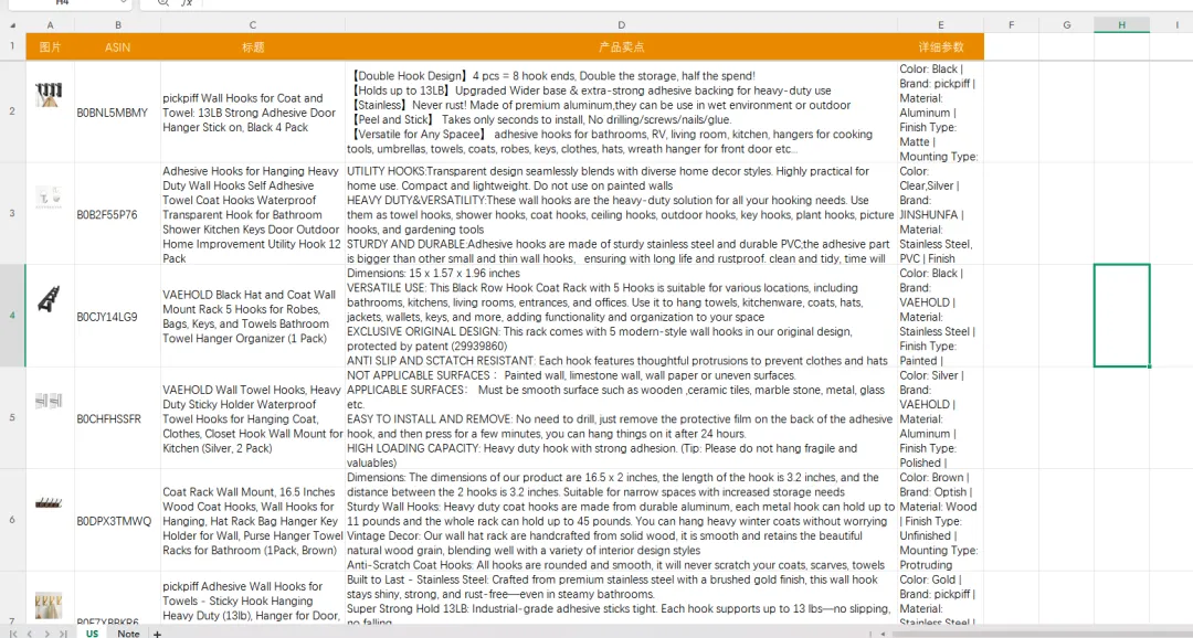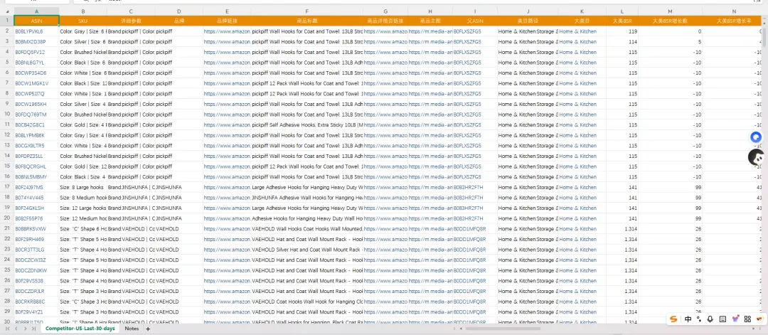 (以Coat hook为例)根据ASIN数据和关键词数据拆解里面从属性、材质、颜色、客群、应用场景来说都有哪些细分品类再进一步聚焦竞品分析:提取Top 20竞品的Review高频词云、差评痛点聚类及A+ 根据关键词的数据来筛选供小于求,并且新品有切入机会的细分赛道;再通过竞品ASIN的Review文本挖掘,识别用户真实痛点与未满足需求;
