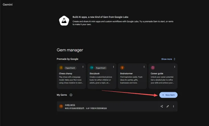 1.然后咱们打开Gemini,点击添加Gems