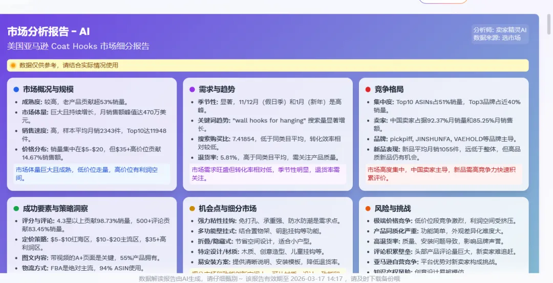 如果能有效应对这些挑战,Coat Hooks 市场仍能为中国卖家带来可观的销售额和利润。