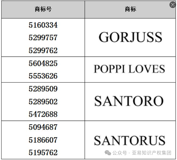 商标侵权具体信息: