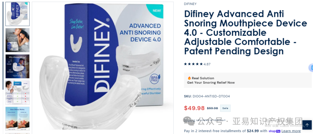 原告品牌:Difiney止鼾器