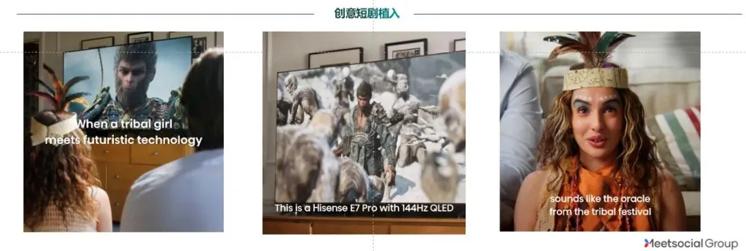 打破常规的测评视频模式,BeyondClick创新地赞助定制了短剧《夫人来自部落》。通过戏剧冲突,巧妙地实现了“短剧剧情、产品卖点、顶级游戏IP”三维有机融合,剧中人物对海信电视展现出的逼真画面的震惊反应成为产品画质最生动,最具说服力的表达。
