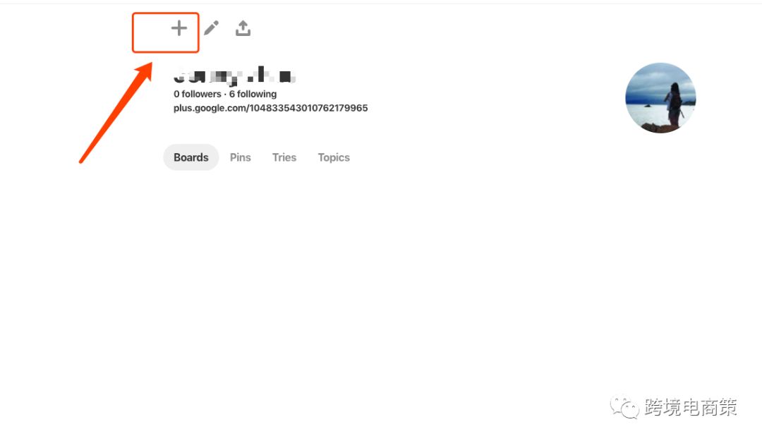 这是我新建的一个账号,你会发现现在我没有创建任何board, 你点击箭头的【+ 】这里 ,会出现create board 和create Pin 这么两种选项,我要是卖婚纱的我肯定以我的品牌名创建一个 board 类似 Tiffanys' wedding dress,或者dream wedding dress 等等,那我每次在这个上面上传图片的时候我甚至可以把这个这个产品的购买链接以及简单的介绍写在图片下方的描述里,之所以这个pinterest 有一个转发图片的功能,而且很多人彼此转发喜欢的图片,类似这样的,请看下图