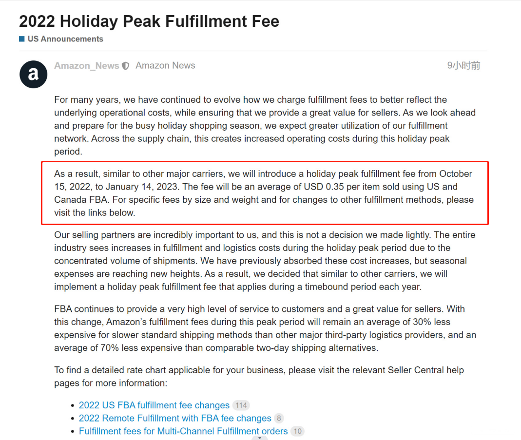 其实不仅仅是亚马逊,像USPS和FedEx等美国主要物流运营商通常会在假日购物季宣布附加费。