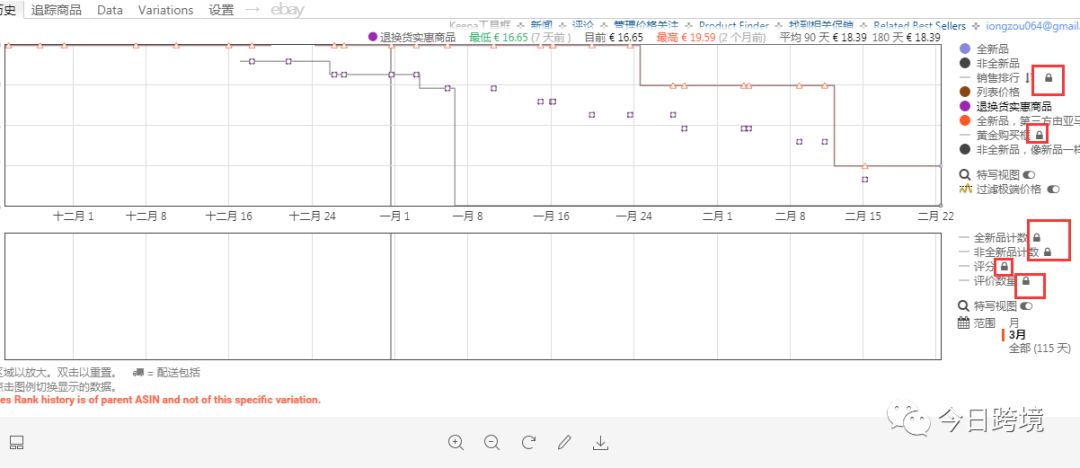 AMZ123了解到,目前,Keepa上许多数据已经被锁死,包括销售排行、评分、评价数量等数据,需要付费才能获取。