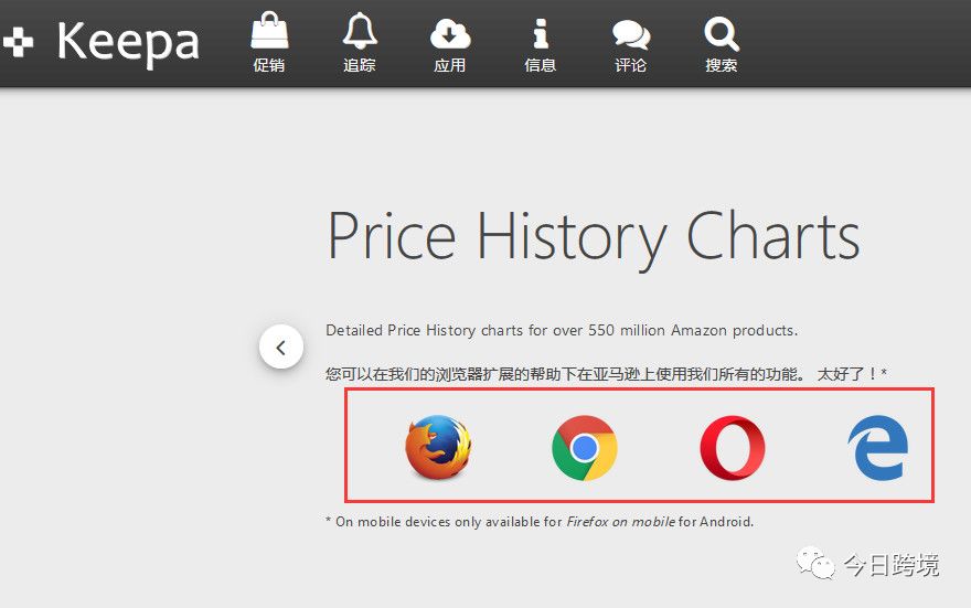 Keepa插件可以在Chorme和火狐浏览器上安装使用。而且该工具下载需要翻墙,安装之后,才可以直接使用。