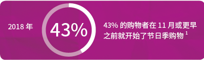 Facebook研究表明,全球购物者在“黑五周”期间购物的时间更早,而且50%的节日季购物在2018年12月3日周一就完成了。
