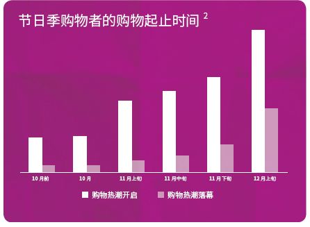 如今的购物季从整个四季度延续至次年一季度。去年,Facebook统计的转化量早在10月便开始攀升,截止11月下旬,大约十分之一的购物者就已完成节日季购物。