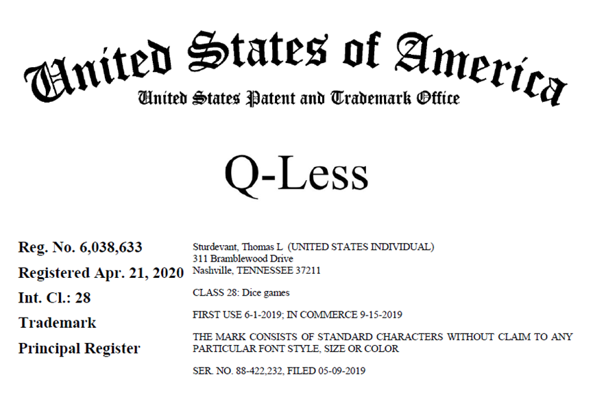 本次案件涉及一项美国注册商标和多项版权,商标为 “Q-Less”,注册编号6,038,633,于 2020 年 4 月 21 日注册,国际分类 28 类(骰子游戏)。同时还注册了多个图片和视频版权发起维权,赛贝提醒未经授权不得擅自使用,以免引发侵权风险。