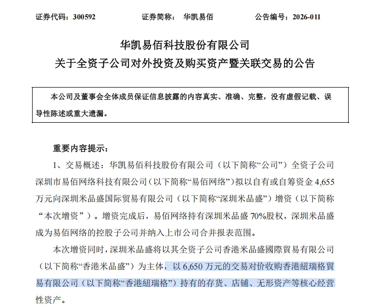 过去一年,易佰已经搞了三笔收购:2025年5月花8566万买了香港和煦电子商务的店铺资产,同年9月又花5558万收购了深圳树远百镒75%的股权,加上这次的纽瑞格,三笔加起来已经超过1.9亿。这对于一家净利润才1亿多的上市公司来说,算是相当大手笔了。