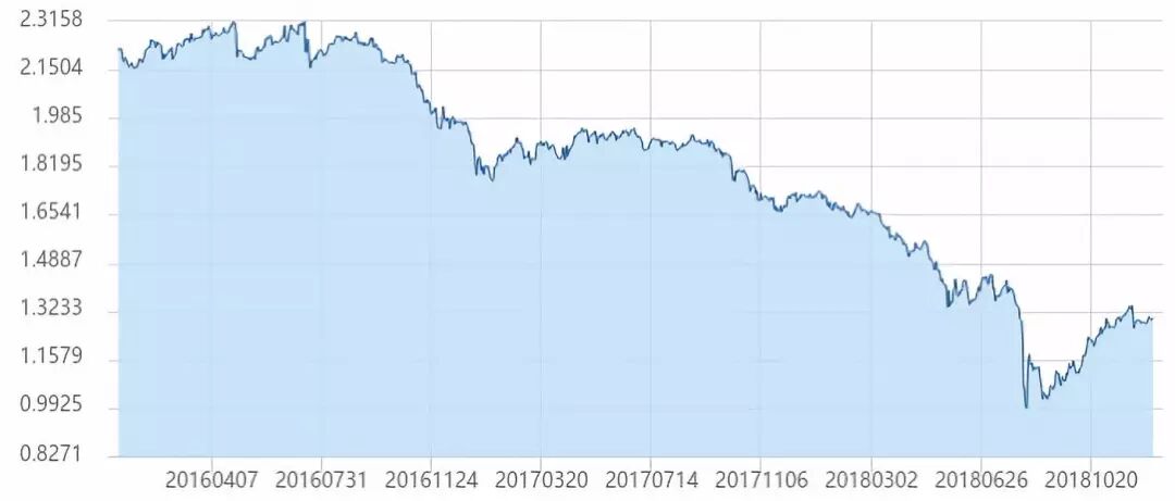 图7 2016年4月至2018年10月土耳其里拉对人民币汇率走势