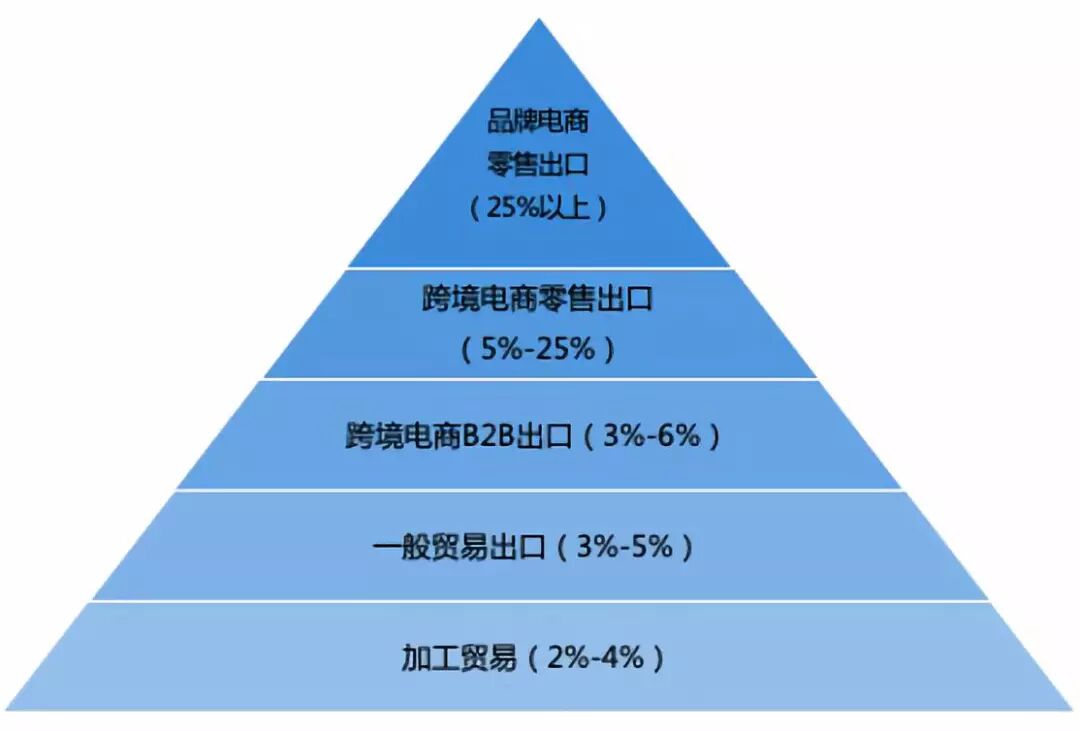 我国是制造业大国,加工贸易是中国出口行业的主力之一。但受到国际经济下行、贸易保护主义抬头等外部因素及供给侧改革、劳动成本上升等内部因素的影响,劳动及资源密集型的加工贸易产业利润率不断下滑,仅有2.1%-3.9%。同样的,上游供应端成本上升和全球市场需求增速放缓等因素也影响了一般贸易出口及跨境电商B2B出口,很多企业利润率通常不及5%。跨境电商零售出口利润率水平普遍不低,但在充分竞争的市场,毛利是不断下行的,同时,由于国内电商流量成本激增,大量品牌开始瞄准国外市场,行业利润被摊薄。目前,我国跨境电商零售出口企业中利润率低于10%的超过三成,40%以上企业利润率在11%-25%之间。