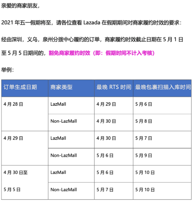 Shopee平台将在五一劳动节法定假日豁免卖家的物流时效。物流时效豁免只针对DTS设置的工作日,自然日没有物流时效豁免。
