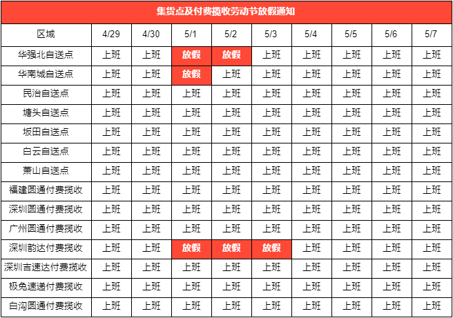 2021年五一劳动节期间5月1日至5月5日物流时效豁免。