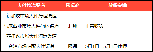 整体时效受假期影响情况:因部分承运商及海关放假,预计各站点物流时效会延误1-2天。