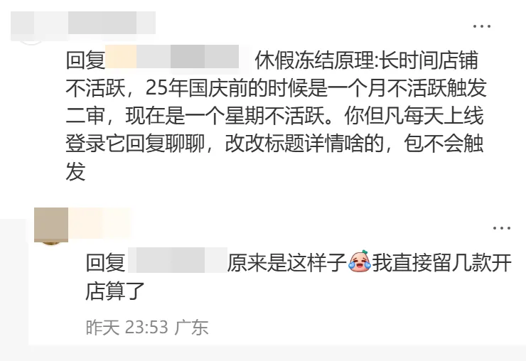 针对市场传言,有服务商澄清:电商平台因休假模式产生的审核与权重影响,仅适用于中国台湾本土店铺。还有卖家拆解了“休假冻结”的触发原理,认为核心诱因是休假期间店铺长期处于非活跃状态,被平台判定为异常。只要卖家维持每日登录后台,并进行基础运营动作,就可以避免冻店风险。