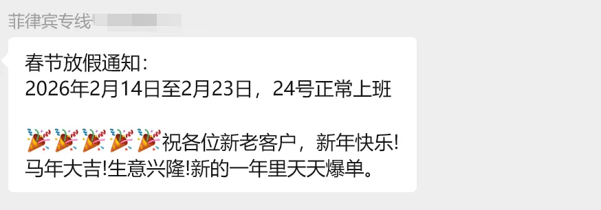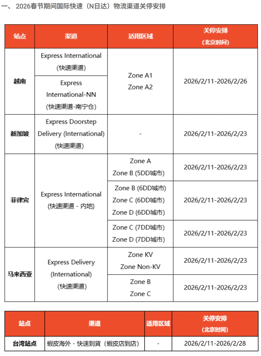 ①2026春节期间国际快速(N日达)物流渠道关停安排