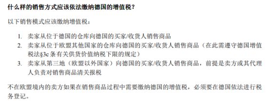 2. 卖家从位于欧盟其他国家的仓库向德国的买家/收货人销售商品——根据远程销售额制度的要求,德国站一年销售额超过10w欧元则需要注册和申报VAT;