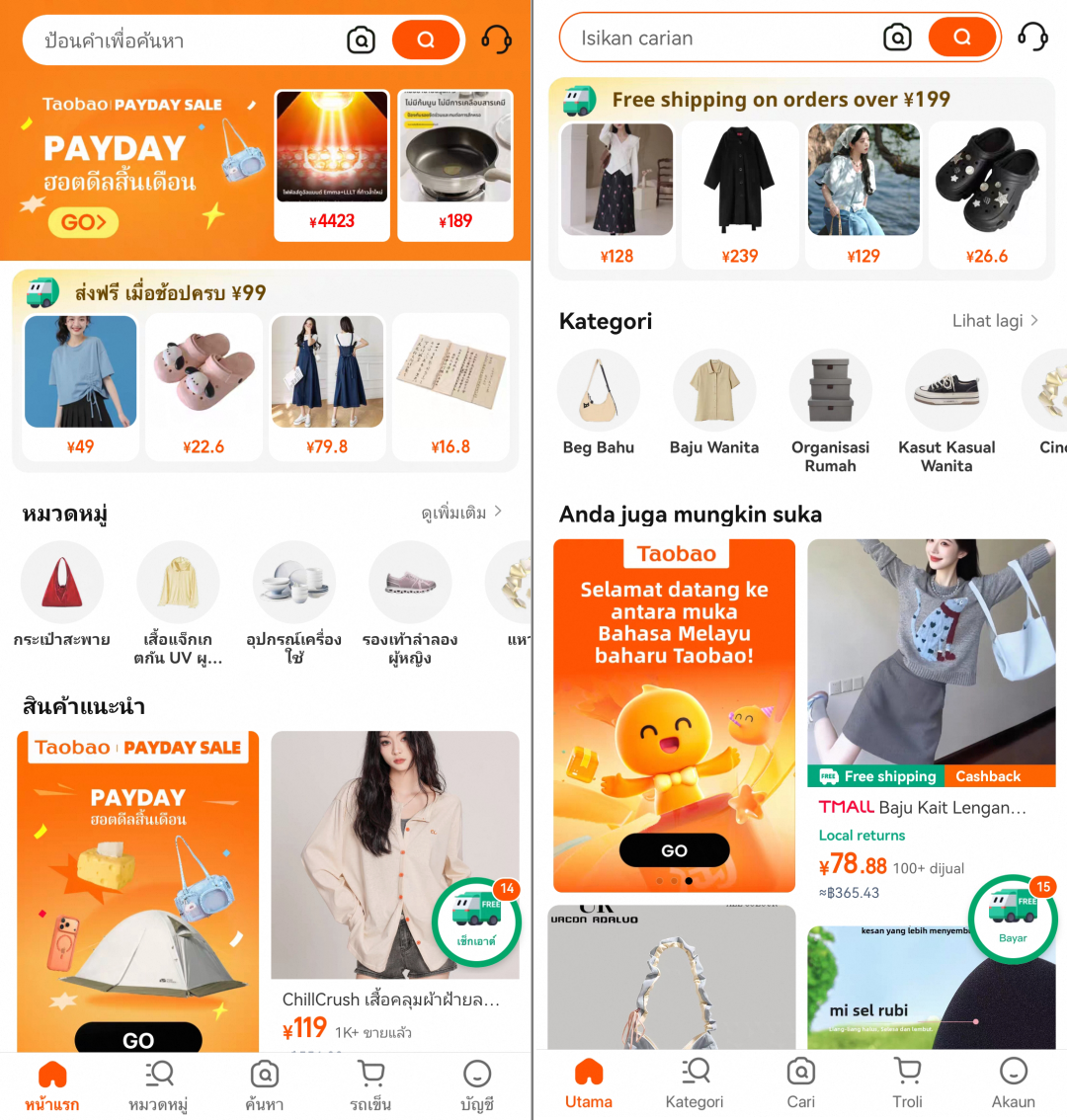 这份对商家的 “托举力”,源于淘宝此前在海外市场马不停蹄的前置布局。例如在东南亚这一关键市场,淘宝的本地化服务不断完善,先在新加坡与马来西亚上线英文版界面,后又面向泰国站点上线泰语版,近来马来语版本也已正式上线;支付环节更是打破壁垒,目前淘宝支持全球 29 种外币支付。