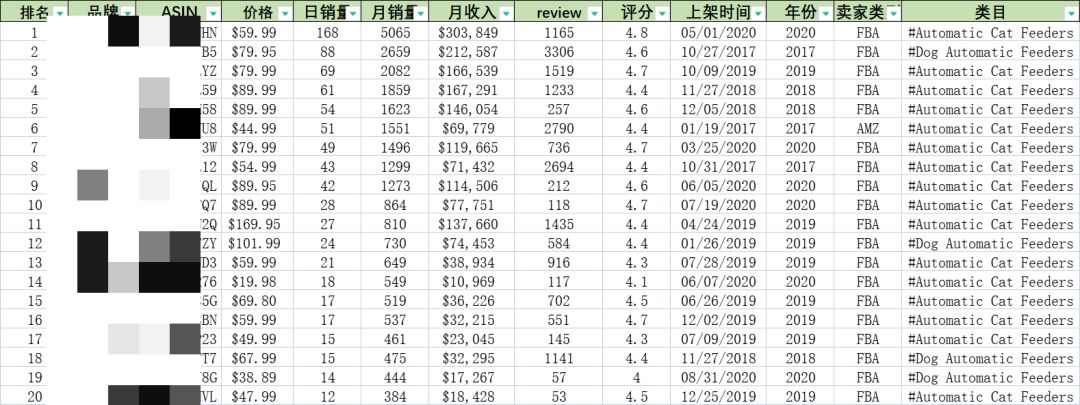 这个垂直类目不算大(自动喂食器一个月总销量大概32,090件),50名开外的产品,一天也就卖1件左右。