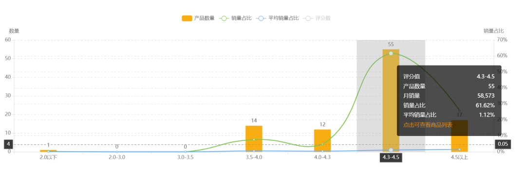 评分4.3分以上的产品,占了总销量的87%以上,市场很成熟了。