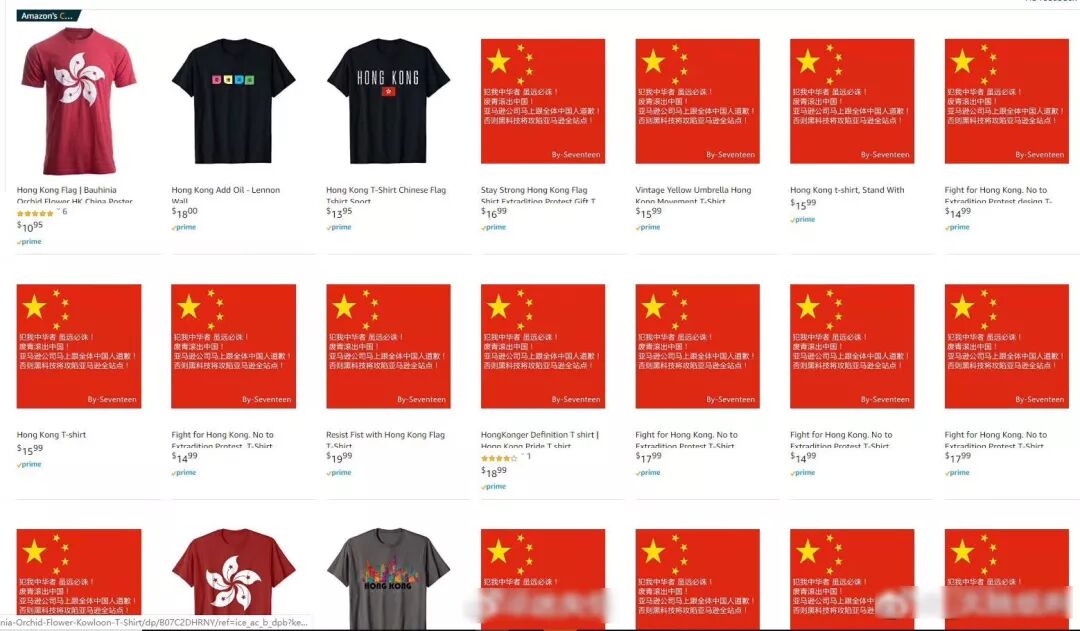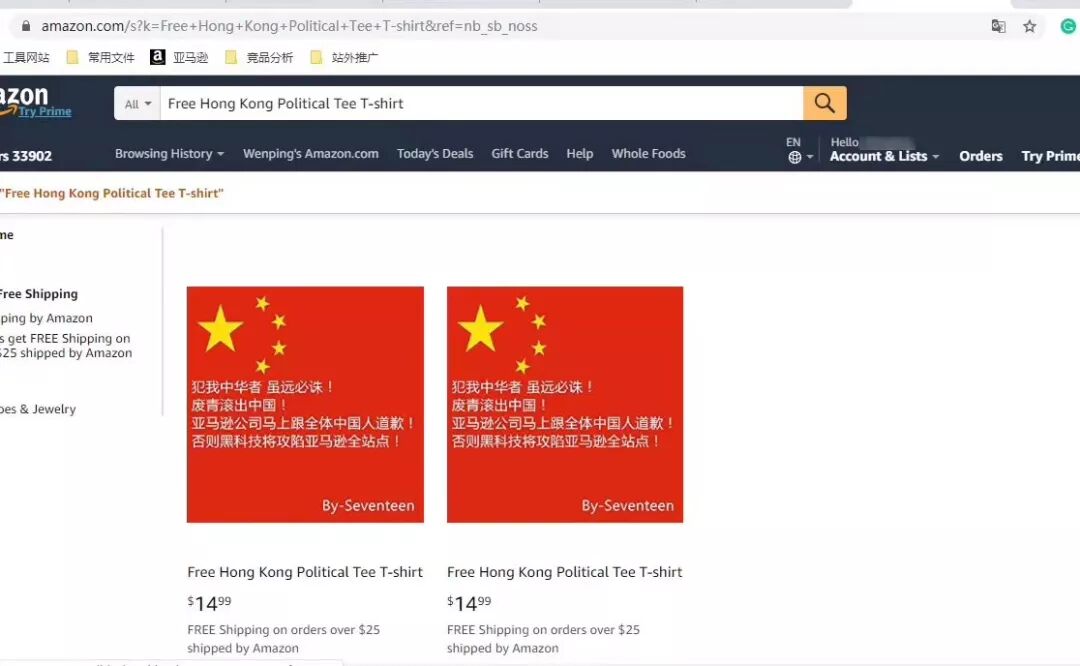 零售巨头亚马逊(美国)售卖港独T恤!结果···