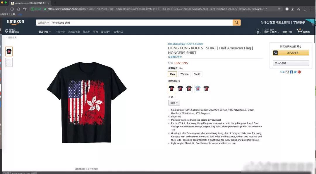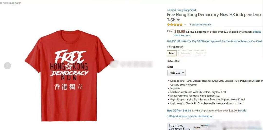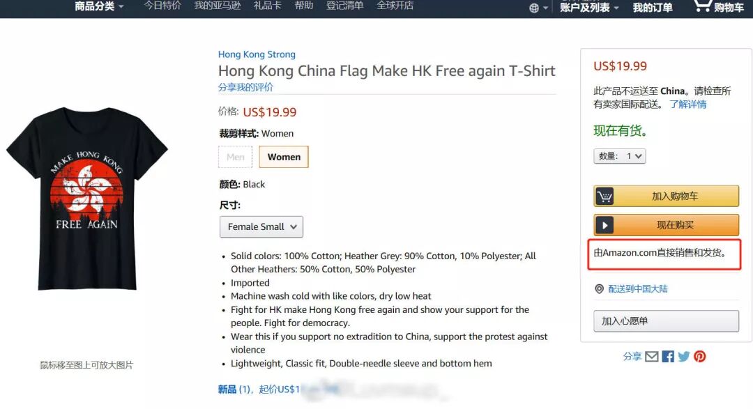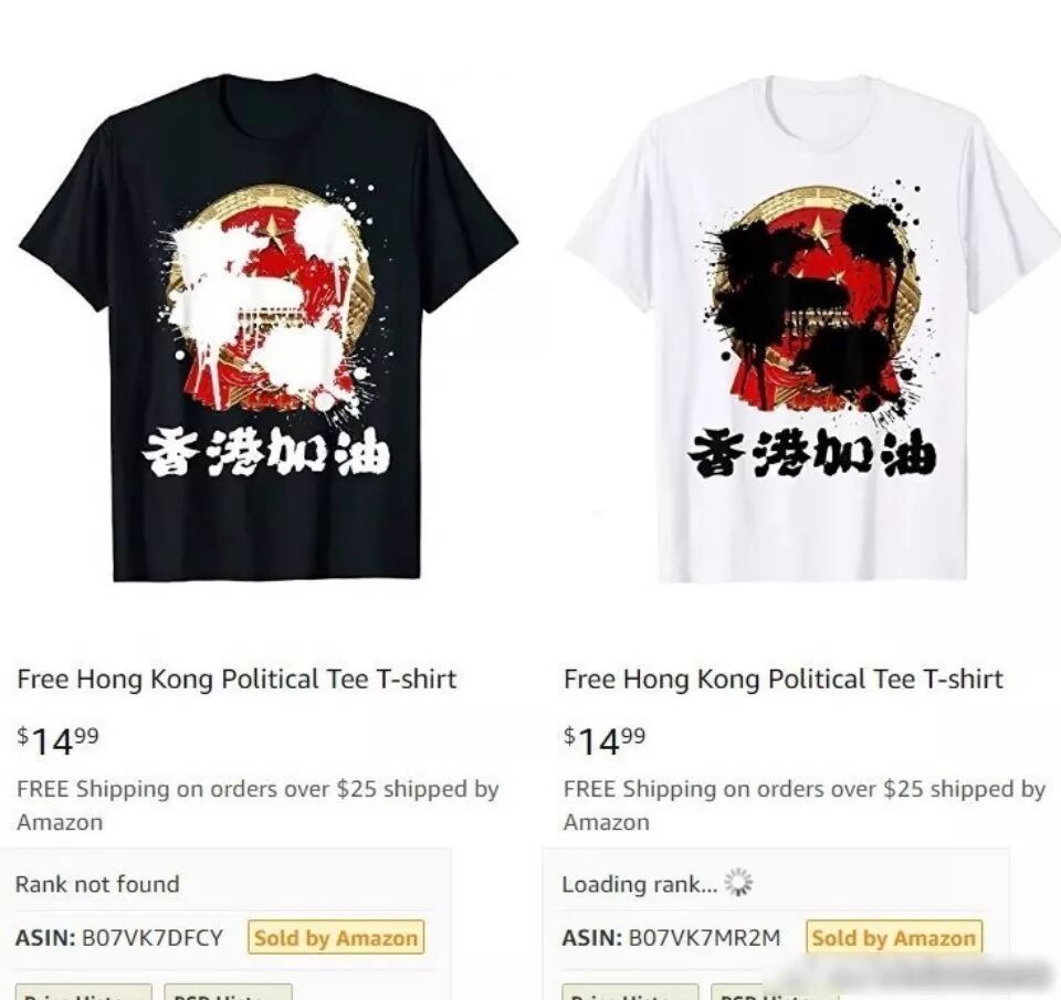 亚马逊售卖港独T恤无良!