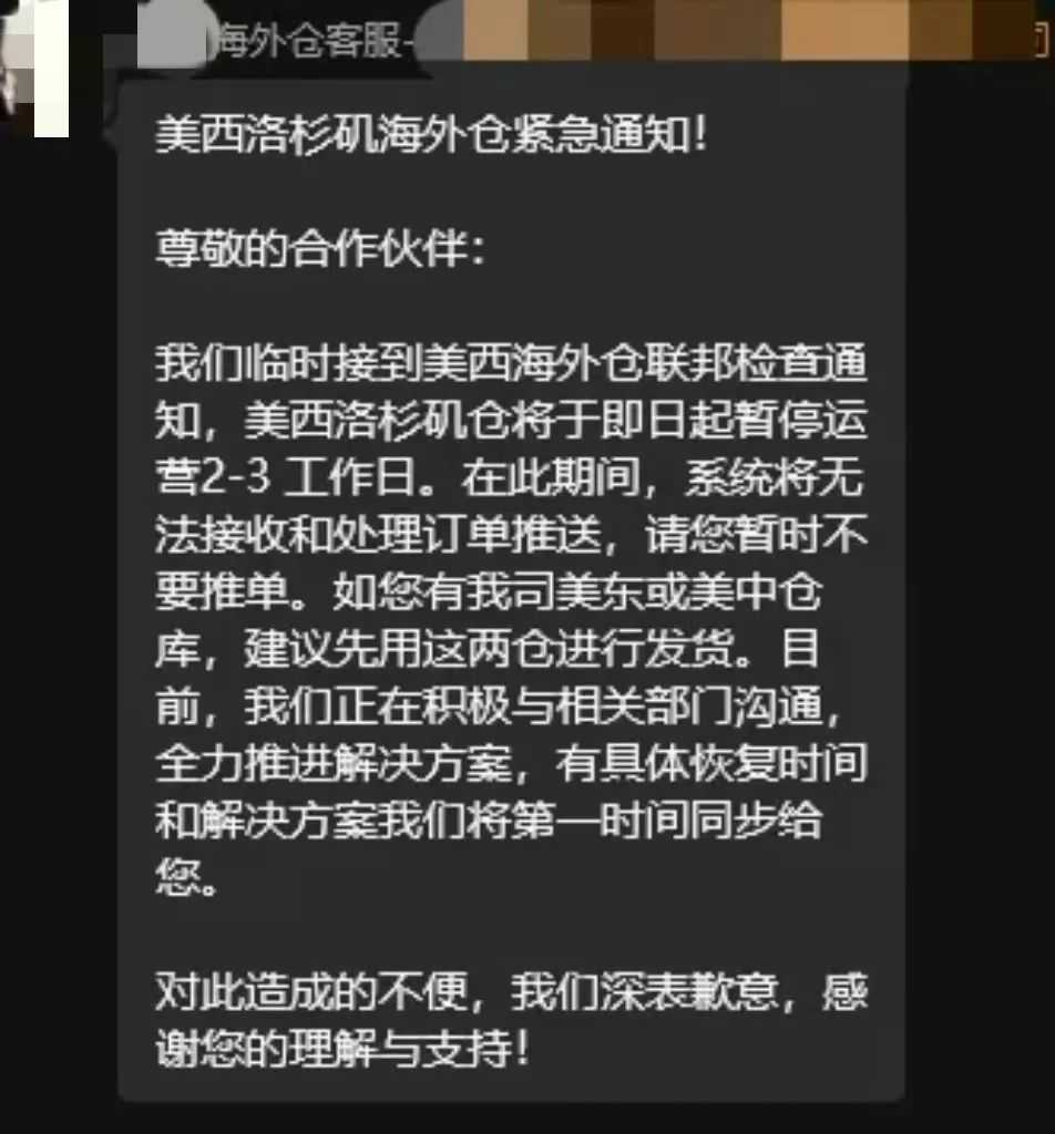 涉事货代也是立即发了紧急通知: “仓库暂停运营 2-3 个工作日,请卖家们暂时不要推单。”